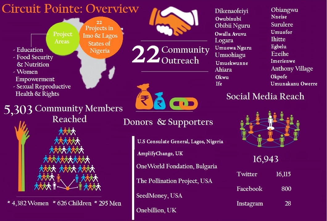 Circuit Pointe is a non-profit, youth-led organization established in 2015 by a young female Nigerian after hearing untold stories of oppressed women, abused teens and victims of traditional practices. We have a 3-member Board of Trustees and 40 volunteer members who are young people between 18-35 years.